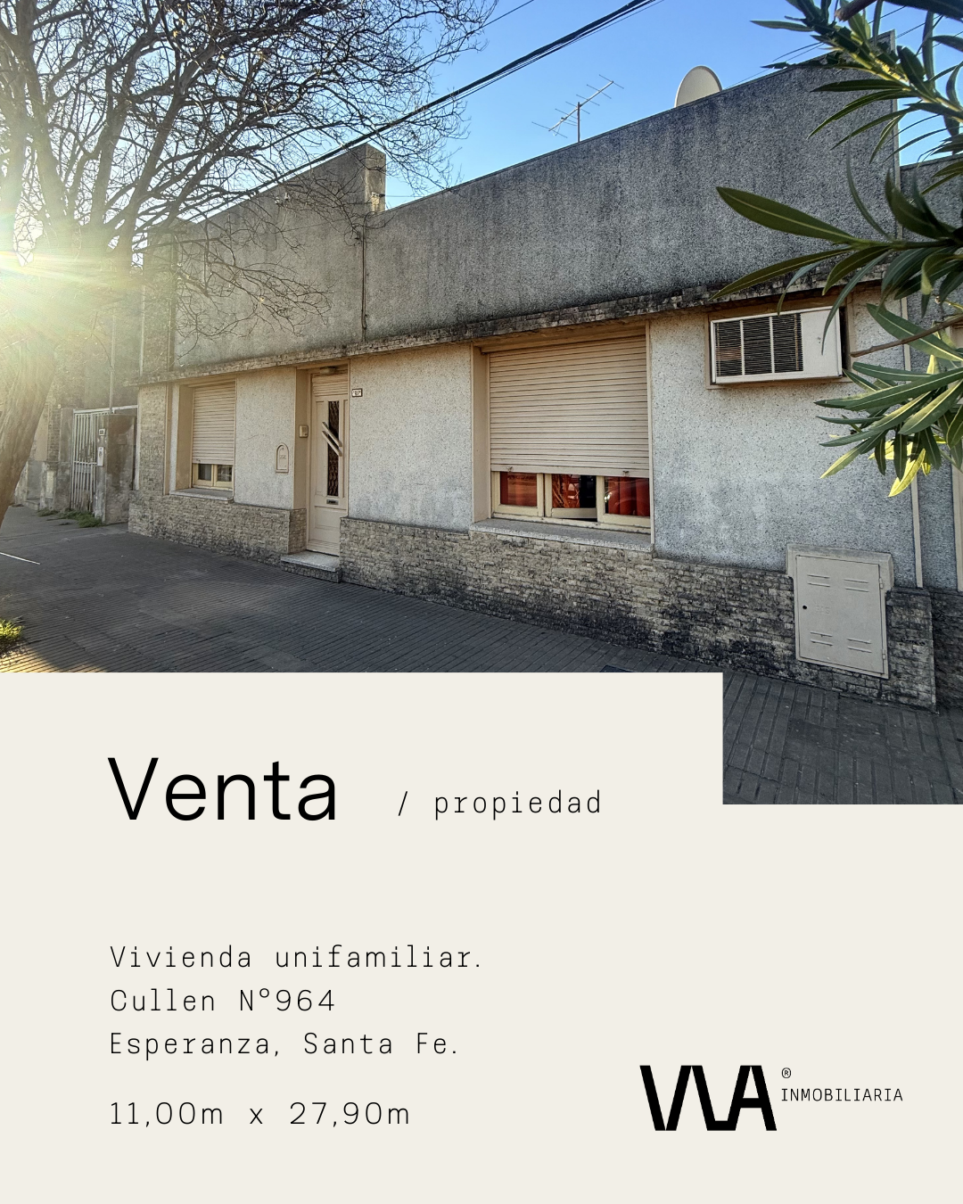 Consultas al 3496 — 465240 | inmobiliarias.vla@gmail.com | Belgrano 2024 (Esperanza, Santa Fe).