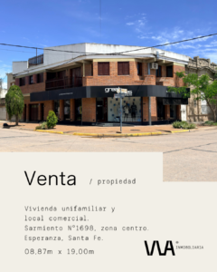 En venta PH: Vivienda unifamiliar y local comercial en zona centro de Esperanza. Se comercializan juntas o por separado.